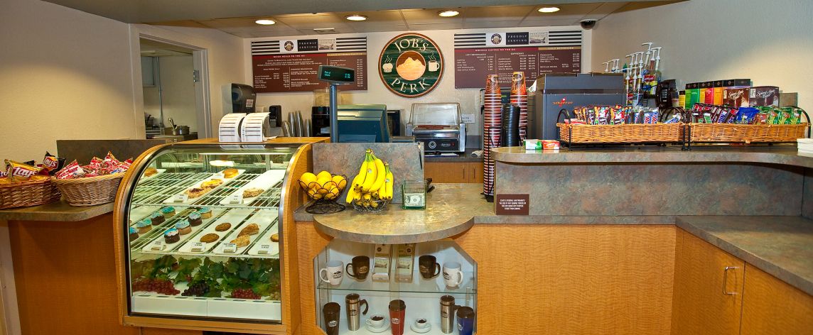 Stop by Job’s Perk located on the first floor of the hotel, just up the four steps from the casino.